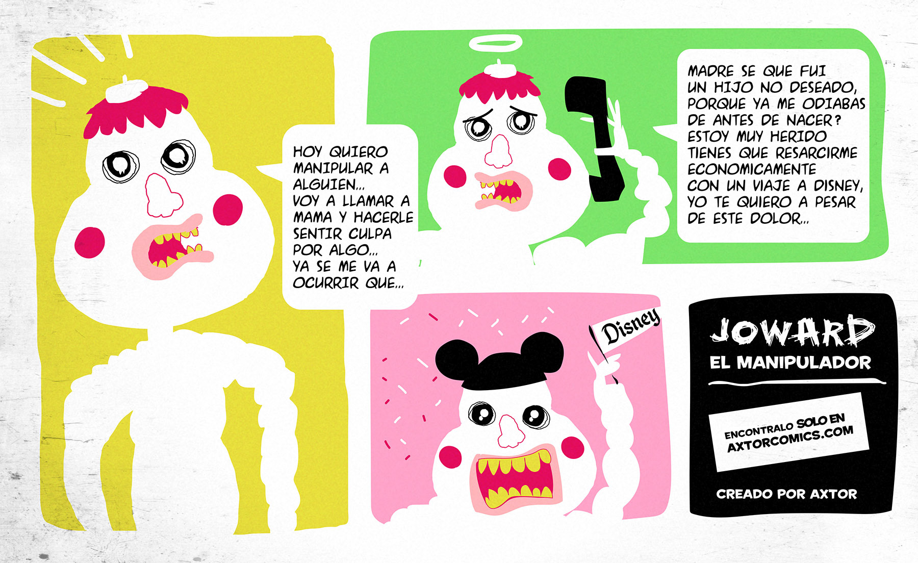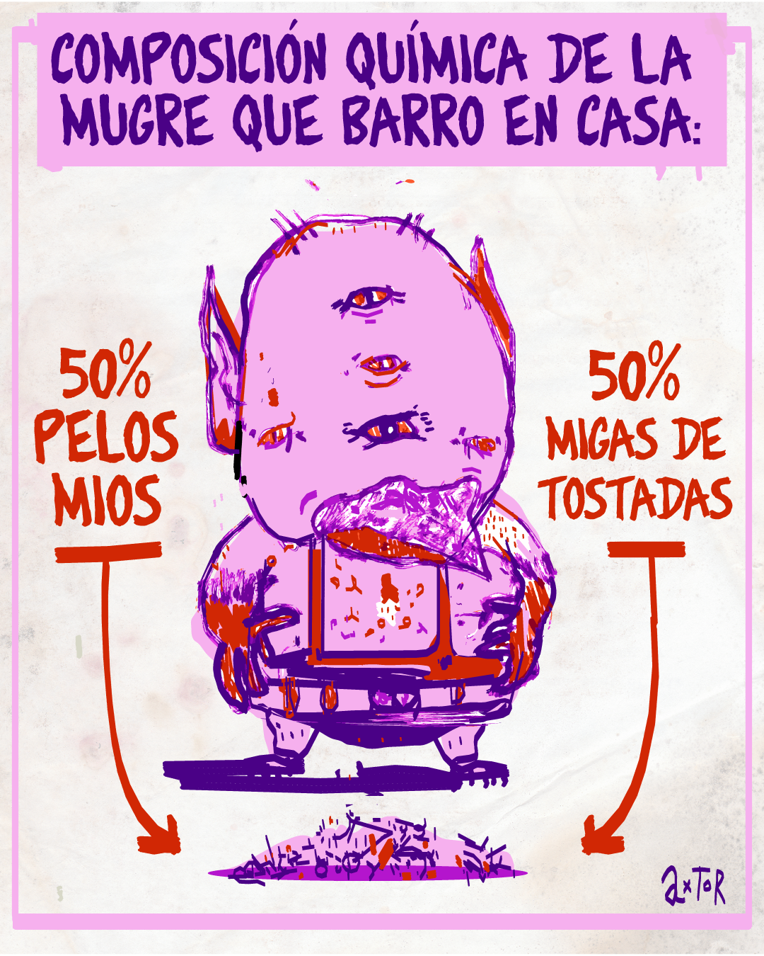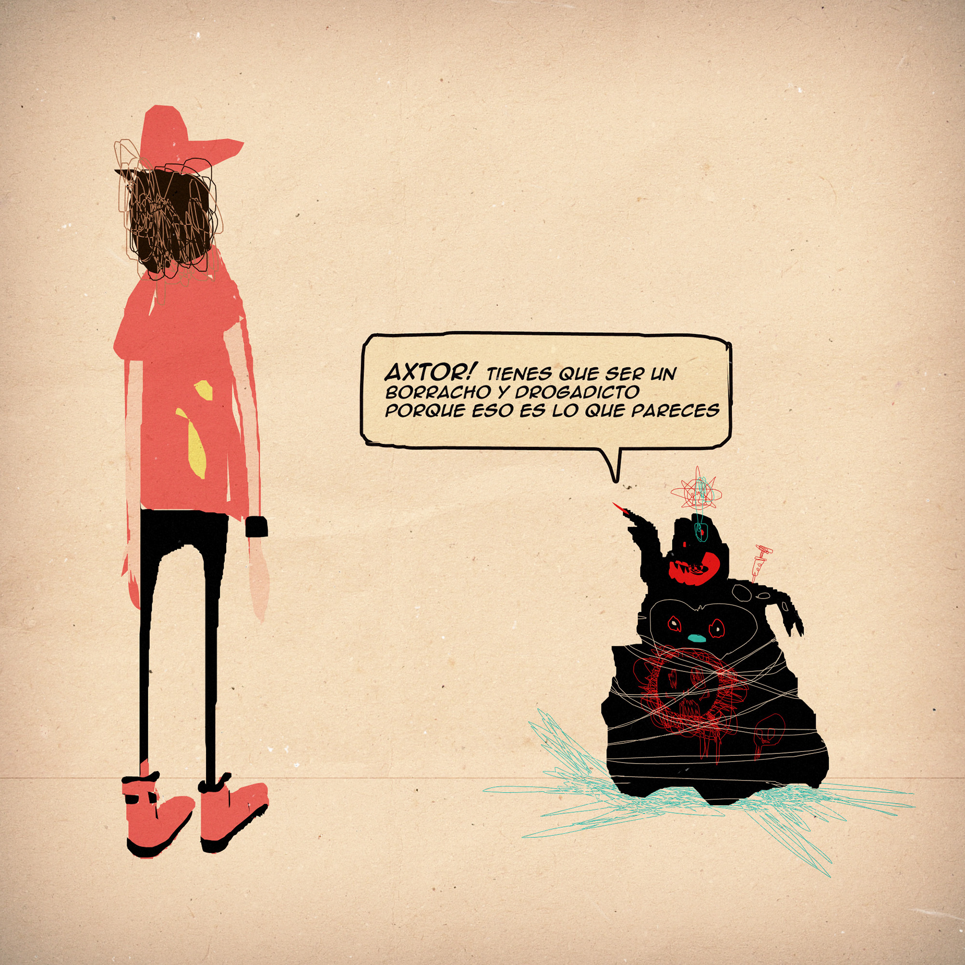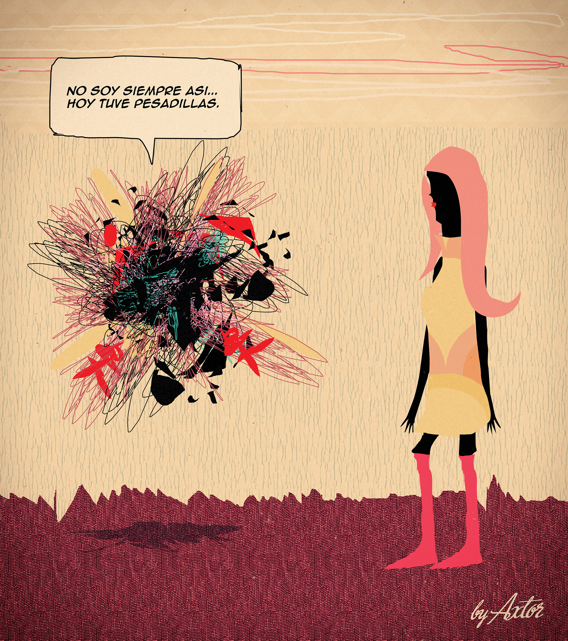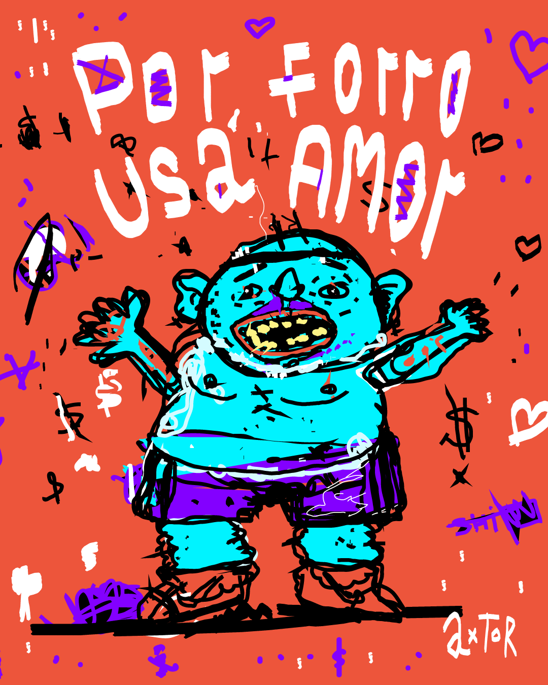 This is experimental graphic humor because the formula is always changing while keeping a raw and colorful essence that connects all the pieces through themes, emotions and psychological aspects. The works combine the absurd, the critical and the paradoxical sides of life. Each piece explores curious visual codes with strong graphic design presence and narratives that range from surreal to deeply reflective. Axtorcomics aims to bring art closer to graphic humor blurring the lines between them and creating a unique visual language without limitations.