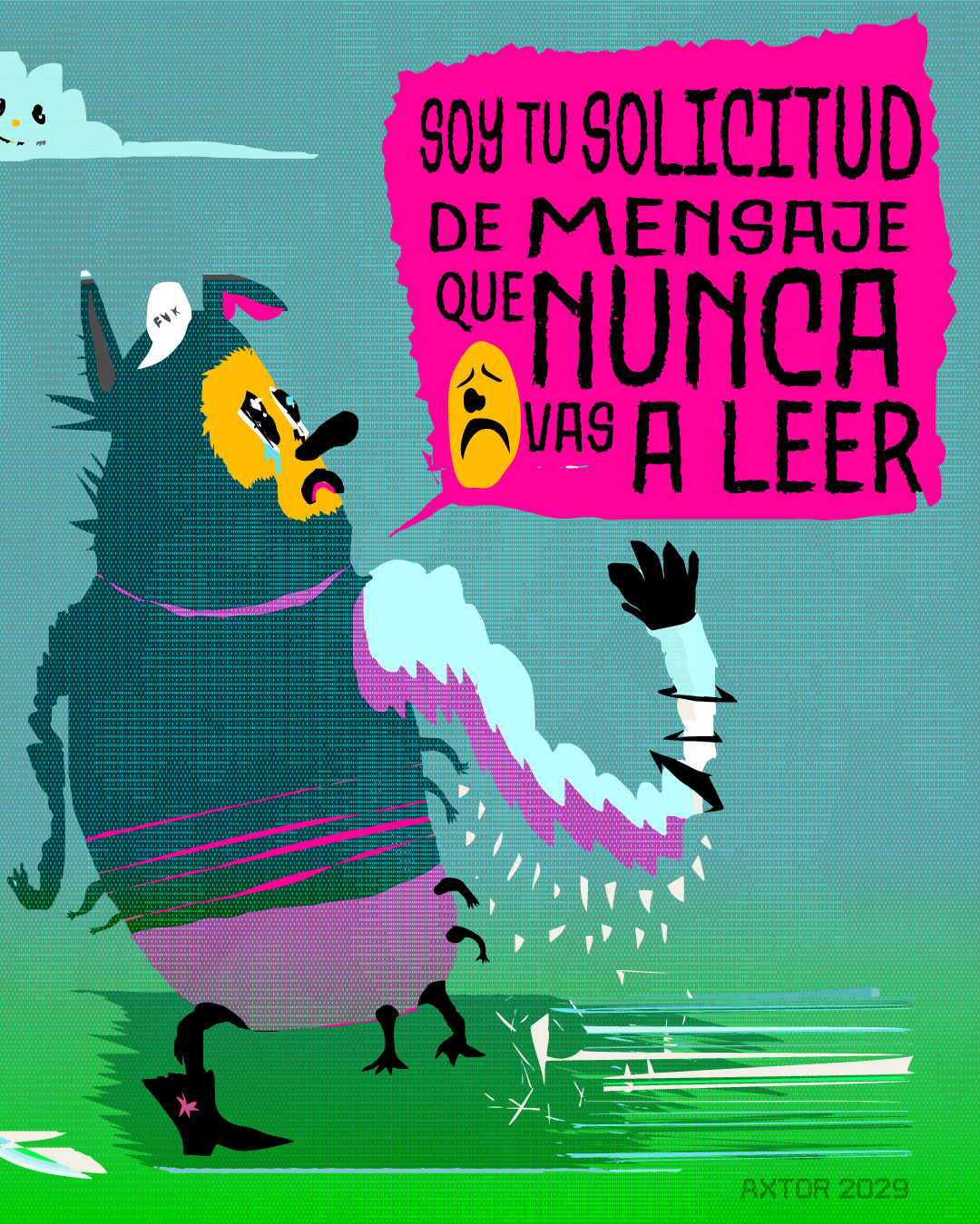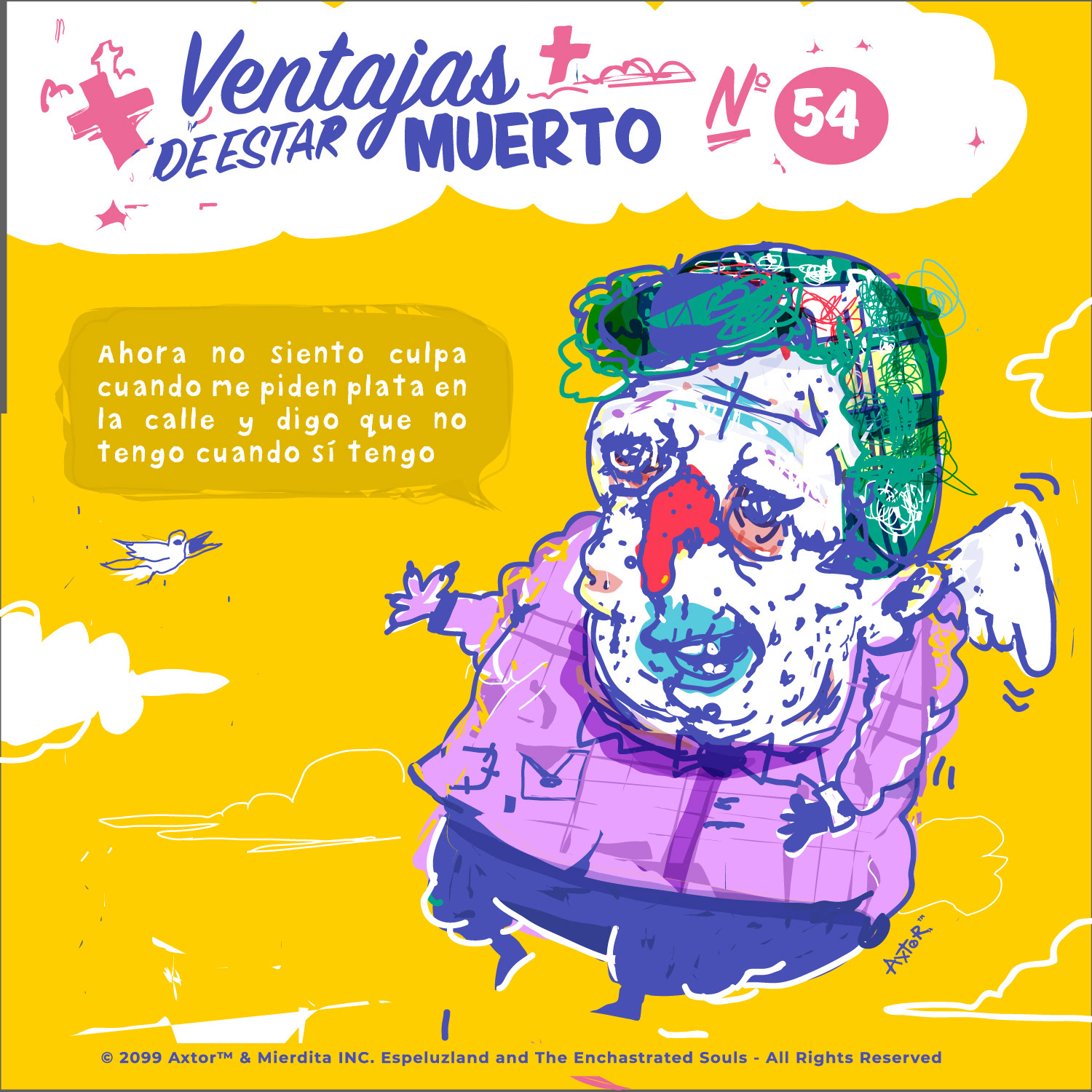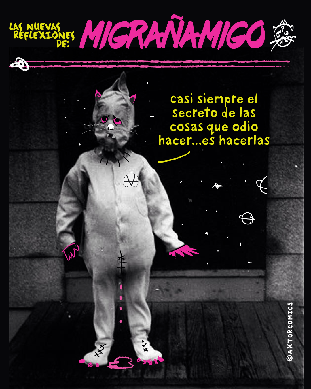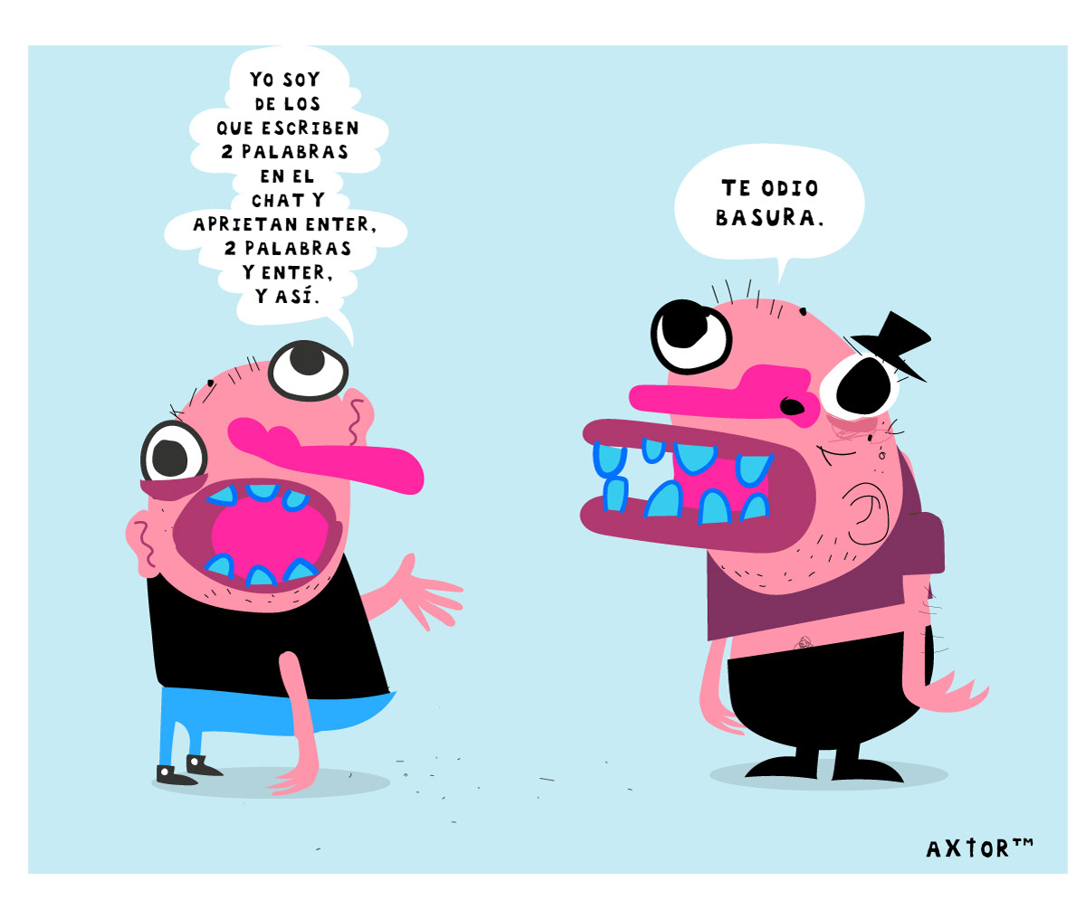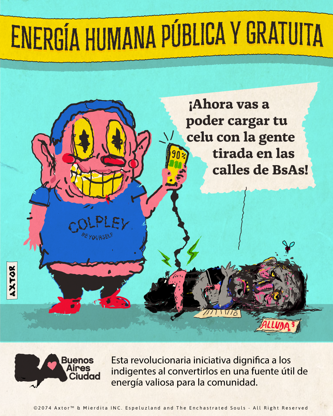 This is experimental graphic humor because the formula is always changing while keeping a raw and colorful essence that connects all the pieces through themes, emotions and psychological aspects. The works combine the absurd, the critical and the paradoxical sides of life. Each piece explores curious visual codes with strong graphic design presence and narratives that range from surreal to deeply reflective. Axtorcomics aims to bring art closer to graphic humor blurring the lines between them and creating a unique visual language without limitations.