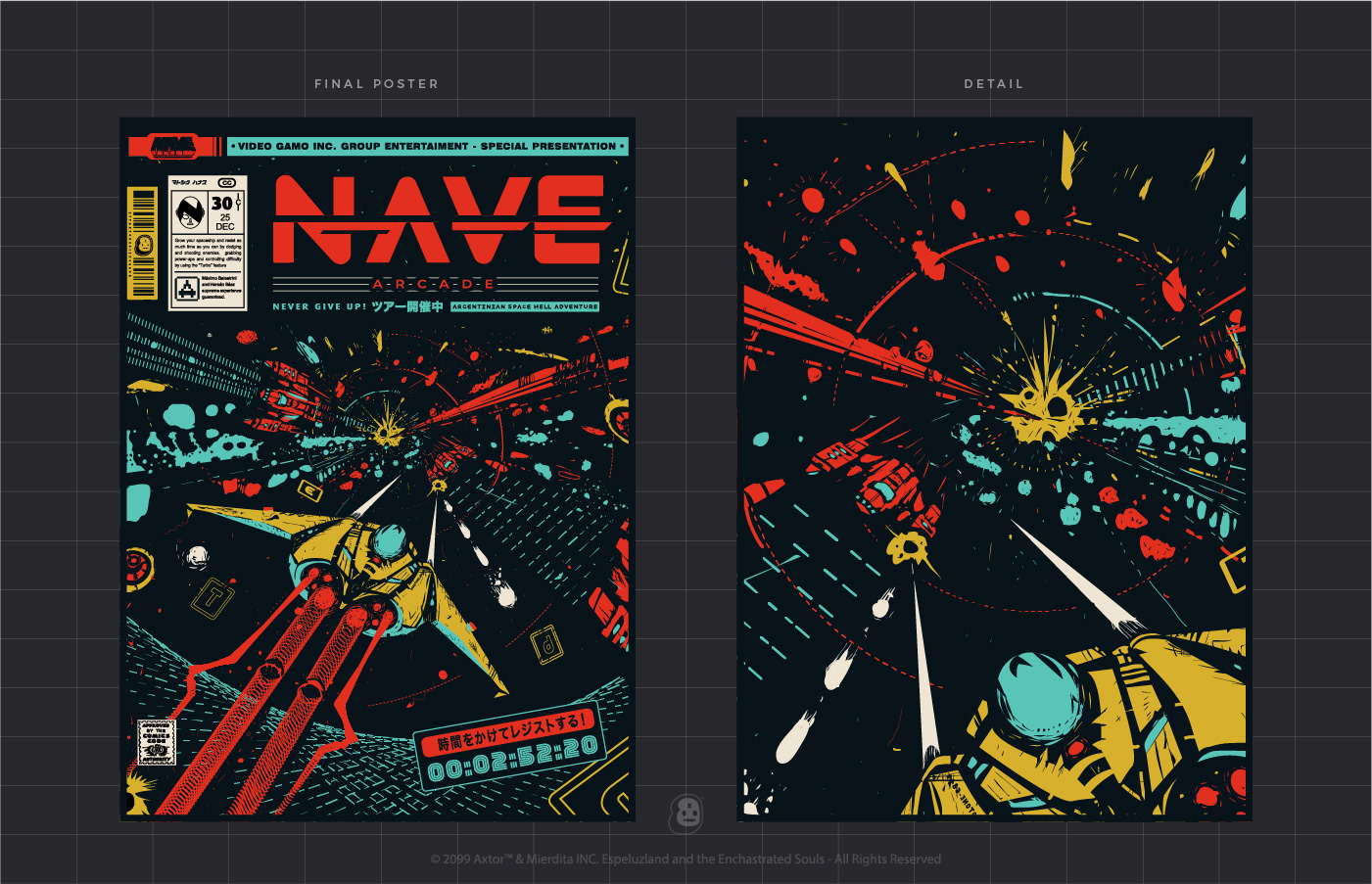 Poster, redesigned logo, and T-shirt for the winner of the 'Arcade Ship' world championship. Reformulated NAVE - T-shirt / Poster for Nave Arcade 2017 6th. World Tournament. Original creation by VideoGamo